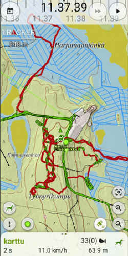 Sitten vaan taipaleelle. Menomatkalla käytiin läpi irtilaskupaikkoja. Lopulta paikaksi sovittiin Tynnyrikummun soramonttu. Siitä laskin Kartun hakemaan klo 9.10.